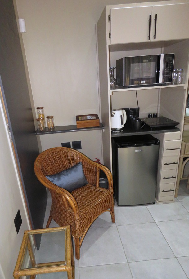 - Mini kitchen with microwave oven, kettle, fridge