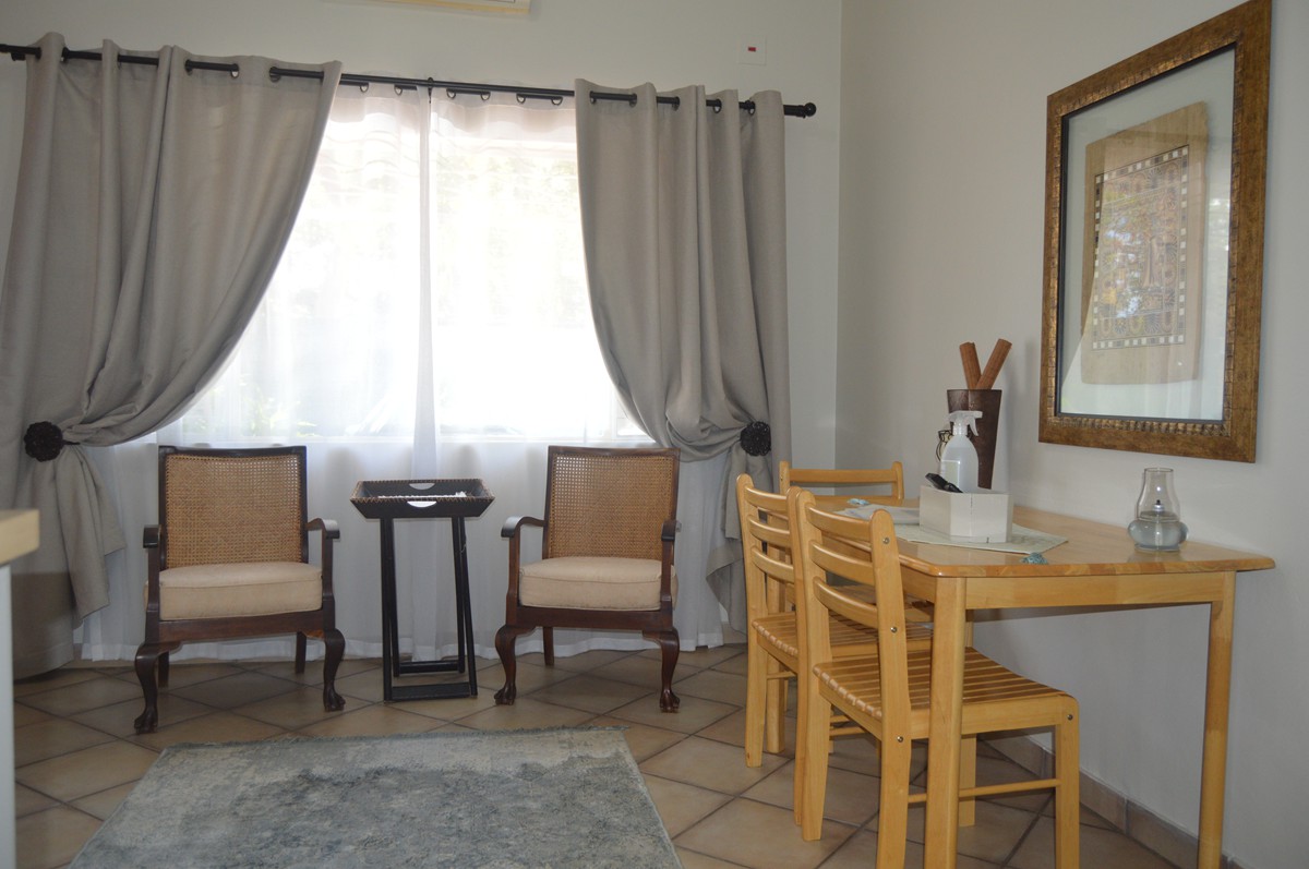 - Double room, en-suite shower, basin, toilet + small open plan living area with an extra mattress on request for one child