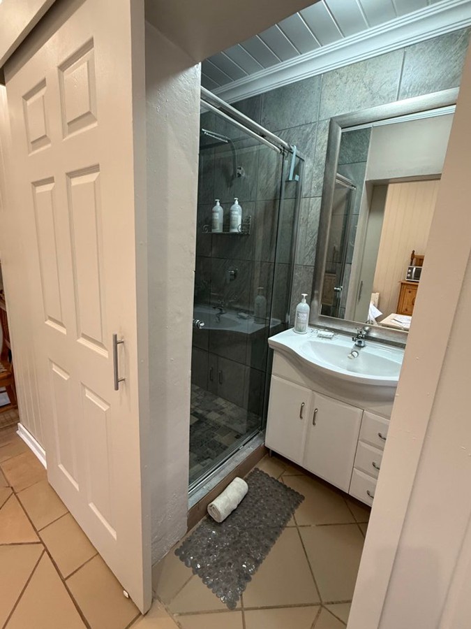 - Full bathroom with shower, basin, toilet and bathtub