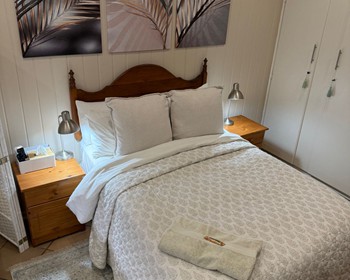 - Double room, full en-suite bathroom, open plan lounge with sleeper couch + fully equipped kitchen